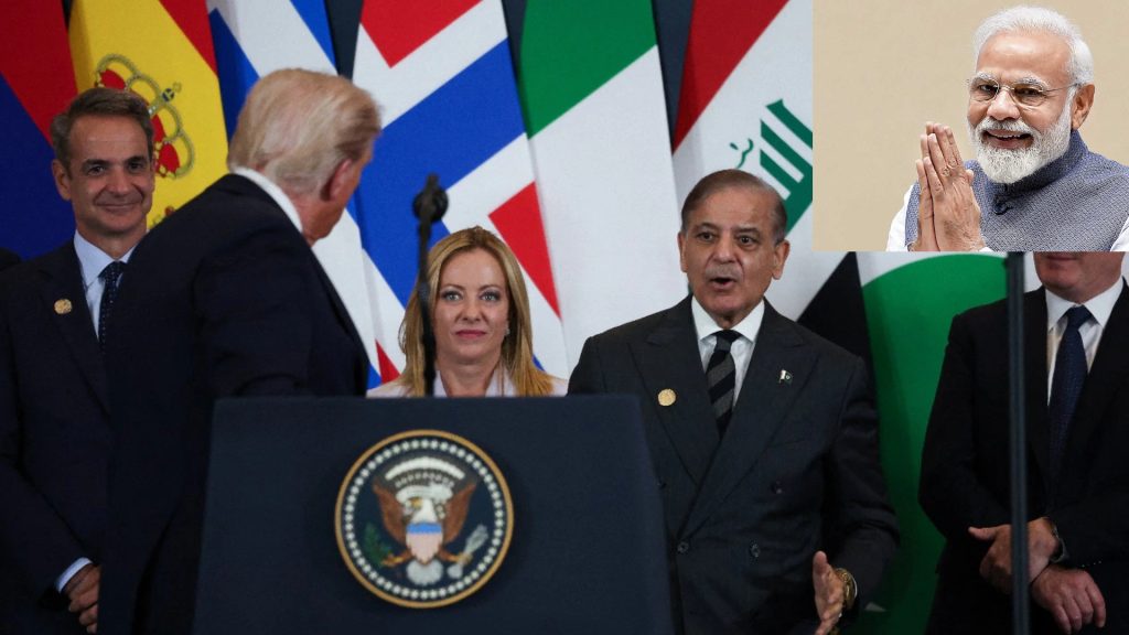 মঞ্চে ট্রাম্প তার পেছনে দাঁড়িয়ে থাকা পাকিস্তানের প্রধানমন্ত্রী শেহবাজ শরিফের দিকে তাকিয়ে বলেন, ‘ভারত একটি দুর্দান্ত দেশ। আমার একজন খুব ভালো বন্ধু দেশটির শীর্ষ পর্যায়ে আছেন এবং তিনি দুর্দান্ত কাজ করছেন।’