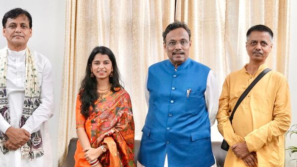 সম্প্রতি ভারতীয় জনতা পার্টির নির্বাচনী দায়িত্বপ্রাপ্ত বিনোদ তাওড়ে এবং কেন্দ্রীয় মন্ত্রী নিত্যানন্দ রাইয়ের সঙ্গে দেখা করেন মৈথিলী ঠাকুর। বৈঠকের ছবি সোশ্যাল মিডিয়ায় ভাইরাল হয়েছে, যা জল্পনা উস্কে দিয়েছে যে তিনি আসন্ন বিহার বিধানসভা নির্বাচনে দ্বারভাঙ্গার একটি আসন থেকে বিজেপির টিকিটে প্রতিদ্বন্দ্বিতা করতে পারেন। বিনোদ তাওড়ে রবিবার তার এক্স হ্যান্ডেলে ছবিগুলি শেয়ার করেছেন। একটি পোস্টে, তাওদে বলেছেন, যার পরিবার ১৯৯৫ সালে লালুপ্রসাদ যাদবের আমলে বিহার ছেড়ে চলে গিয়েছিলেন, রাজ্যের অগ্রগতি প্রত্যক্ষ করার পরে তাঁরা ফিরে আসতে চান।