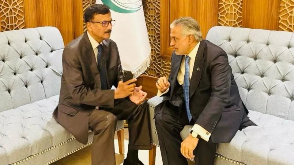 সৌদিতে বাংলাদেশের অন্তর্বর্তী সরকারের বিদেশমন্ত্রী তৌহিদ হোসেনের সঙ্গে বৈঠক করলেন পাকিস্তানের বিদেশমন্ত্রী তথা উপপ্রধানমন্ত্রী ইসহাক দার। ওআইসি-র সম্মেলনের ফাঁকে এই বৈঠকটি হয় বলে জানা গিয়েছে। সেই বৈঠকে দুই দেশের দ্বিপাক্ষিক সম্পর্কের বিষয়ে সন্তোষ প্রকাশ করা হয়। এরই সঙ্গে বাণিজ্য সম্প্রসারণ নিয়েও কথা হয় দুই দেশের মন্ত্রীর। এছাড়া আঞ্চলিক ও বৈশ্বিক বিভিন্ন গুরুত্বপূর্ণ বিষয় নিয়েও মতবিনিময় করেন তৌহিদ এবং ইসহাক।