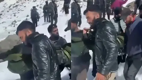 ৬ এবং ৭ অক্টোবর মধ্যবর্তী রাতে দক্ষিণ কাশ্মীরের কিশতোয়ার রেঞ্জে তুষারঝড় এবং বিরূপ আবহাওয়ার মধ্যে পড়েছিল ভারতীয় সেনার একটি দল। জঙ্গি বিরোধী অভিযানে নেমেছিল দলটি। সেই দলে থাকা দুই সেনা জওয়ান নিখোঁজ হয়ে যান খারাপ আবহাওয়ার জেরে। প্রতিকূল আবহাওয়ার জেরে এই দুই সেনা জওয়ানেরই মৃত্যু হয়েছে। শহিদ দুই জওয়ানই বাঙালি। এর মধ্যে বৃহস্পতিবার এক জওয়ানের দেহ উদ্ধার করা হয়। শুক্রবার অপরজনের দেহ উদ্ধার করা হয়েছে। দেহ উদ্ধার হওয়ার পর তা কাঁধে করে পাহাড় থেকে নামিয়েছেন স্থানীয় কাশ্মীরিরা। সেই ভিডিয়ো সামনে এসেছে গতরাতে। তাতে দেখা গিয়েছে, তুষারে ঢাকা পাহাড়ের ঢাল বেয়ে স্থানীয়রা নামছেন। তাঁদের কাঁধে বডি ব্যাগ। বডি ব্যাগের দুই প্রান্ত লাঠি দিয়ে ভর দেওয়া। সেই লাঠি কাঁধে নিয়ে নামছেন স্থানীয়রা।