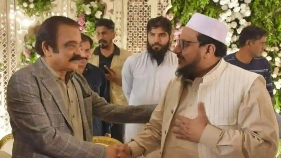 এই ছবি (ছবির সত্যতা যাচাই করেনি ইনিউজ বাংলা) সোশ্যাল মিডিয়া জুড়ে ঘুরপাক খাচ্ছে! ছবিতে একদিকে, কালো কোট পরে রয়েছেন পাকিস্তানের প্রধানমন্ত্রী শেহবাজ শরিফের উপদেষ্টা তথা ঘনিষ্ঠ রানা সানাউল্লাহ। অন্যদিকে, সানাউল্লাহ যার দিকে তাকিয়ে, মুখে হাসি নিয়ে, তার হাত ধরে রয়েছেন, সেই ব্যক্তি, কুখ্যাত সন্ত্রাসবাদী হাফিজ সইদের ছেলে তালহা সইদ। পাকিস্তানের সন্ত্রাস শিবির লস্কর-ই-তৈবার মূল হোথা এই হাফিজ সইদ। বহুবার তার সন্ত্রাসী নীল নক্সা রক্তবন্যা বইয়েছে ভারতে। জানা যাচ্ছে, এই ছবিটি পাকিস্তানের ফয়জলাবাদে এক বিয়ে বাড়িতে তোলা হয়েছে।